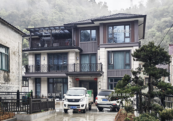 占地面積 120.0㎡ 土建造價 40.0萬 山腳下三層新中式小院